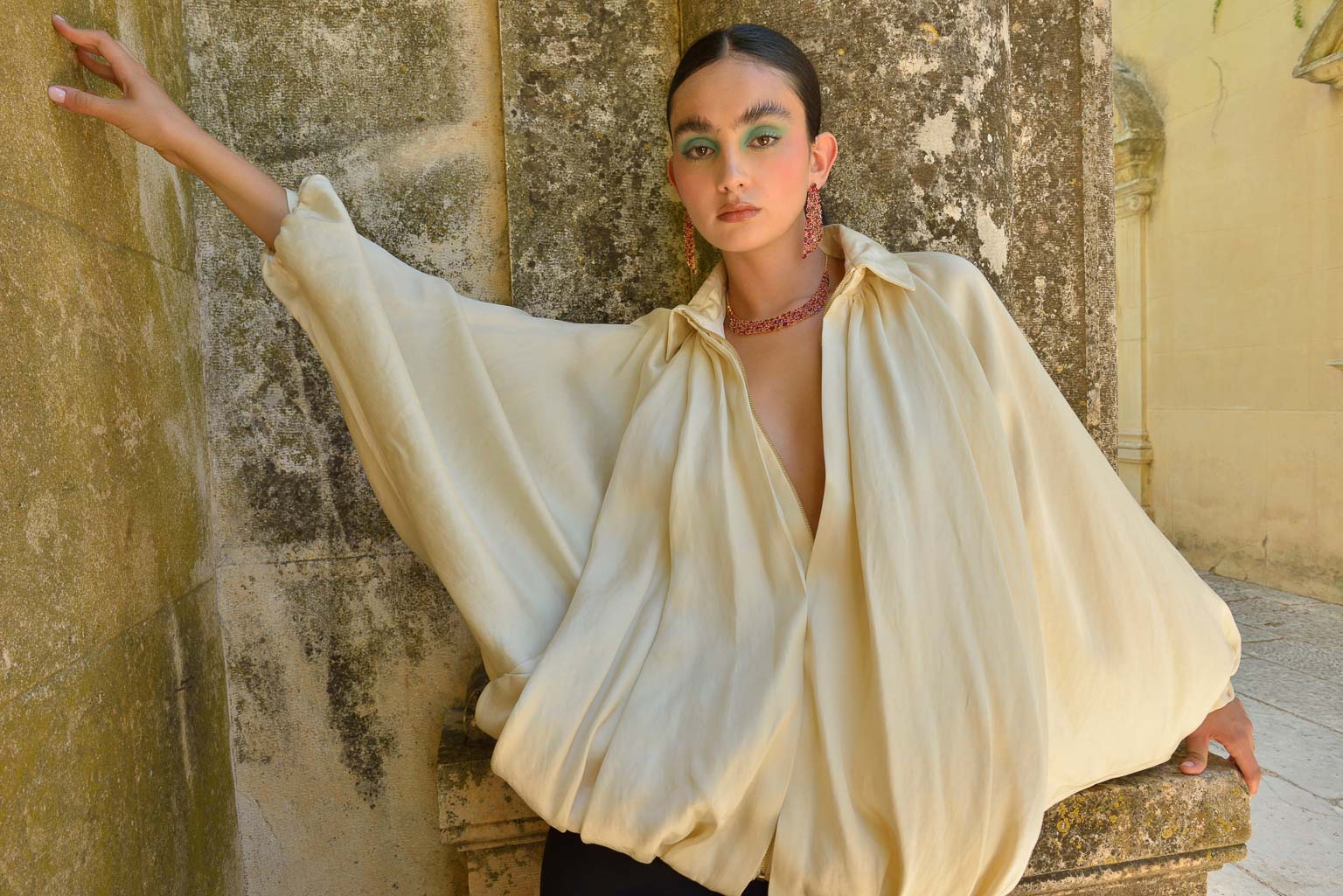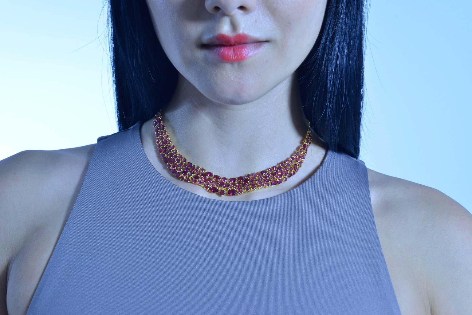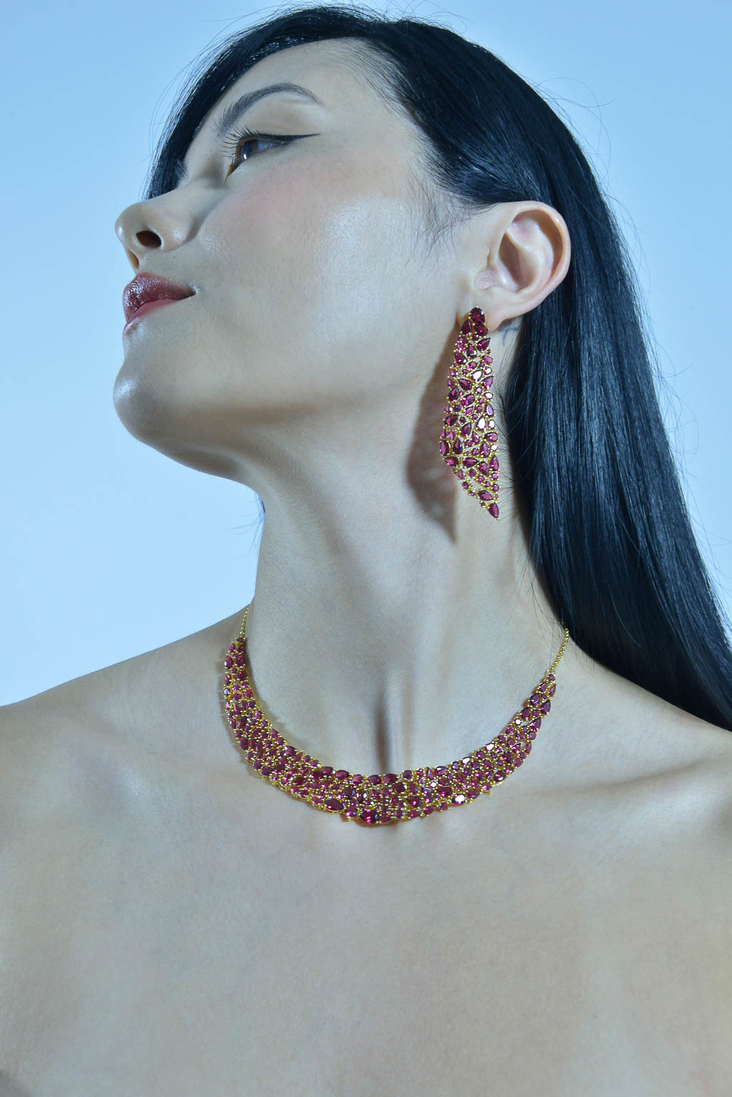 COLLAR PLATA CHAPADO DORADO CASCADA CIRCONITAS ROJAS PERAS Y BRILLANTESSIZE: 40+5CM