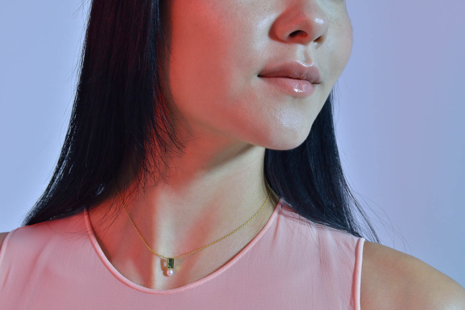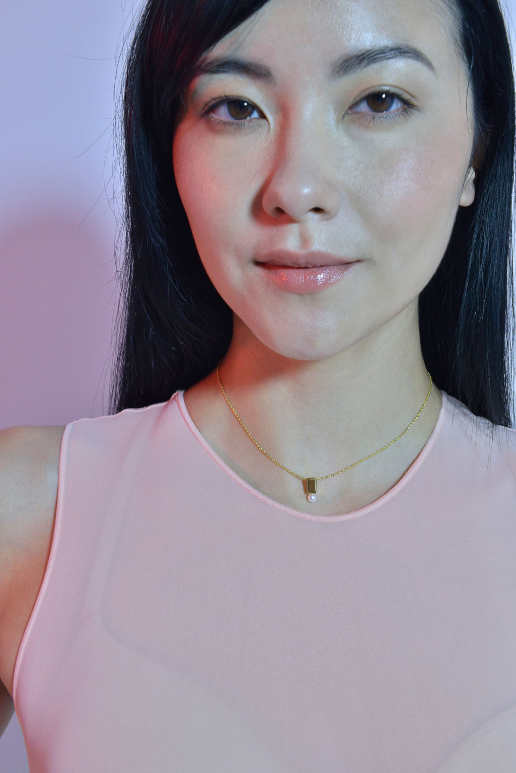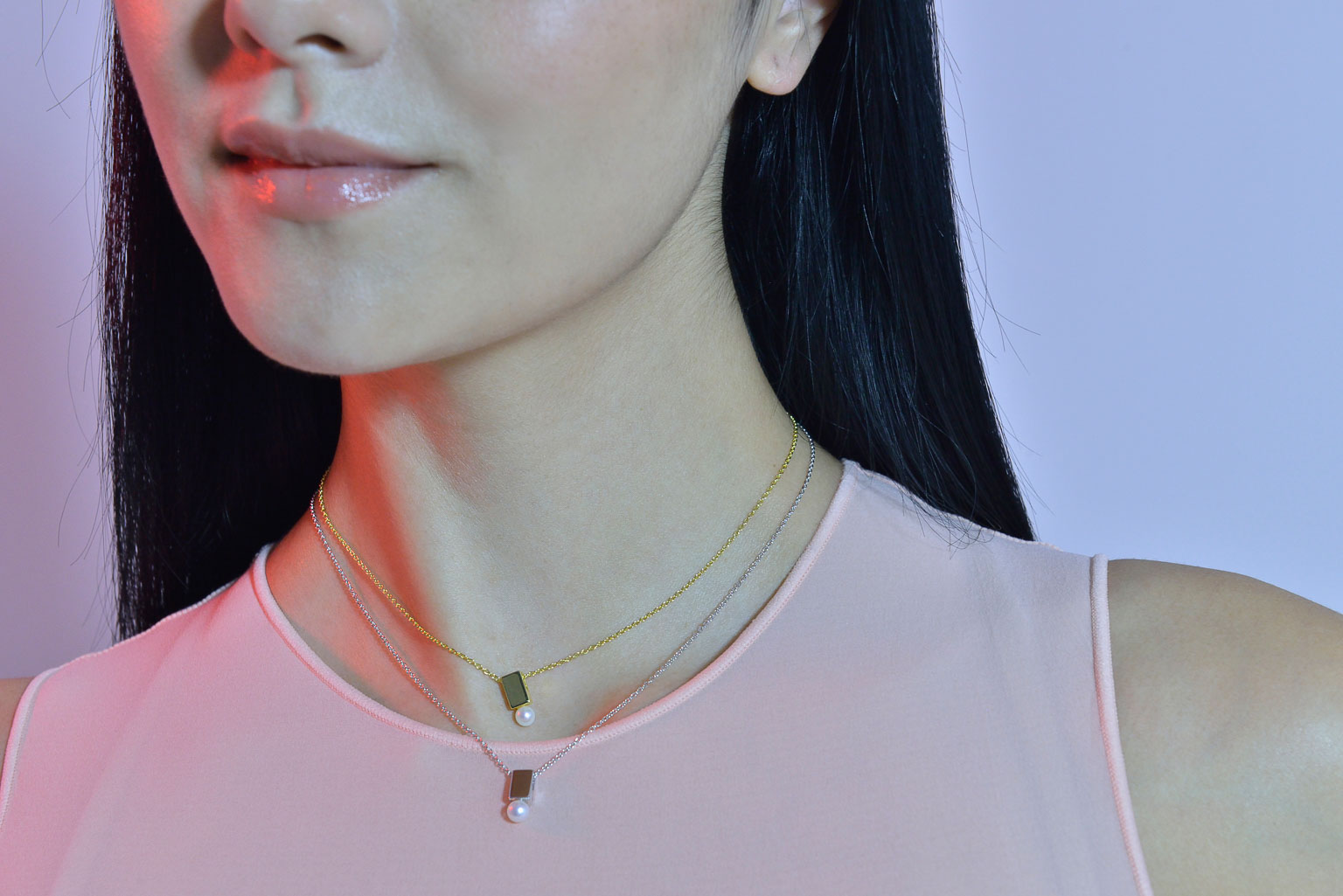 COLLAR PLATA CHAPADO DORADO RECTANGULO LISO PERLA REDONDA DE AGUA DULCESIZE: 37+5CM