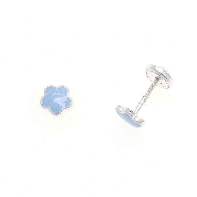 PENDIENTES BEBE PLATA RODIO FLOR ESMALTE AZUL CLARO