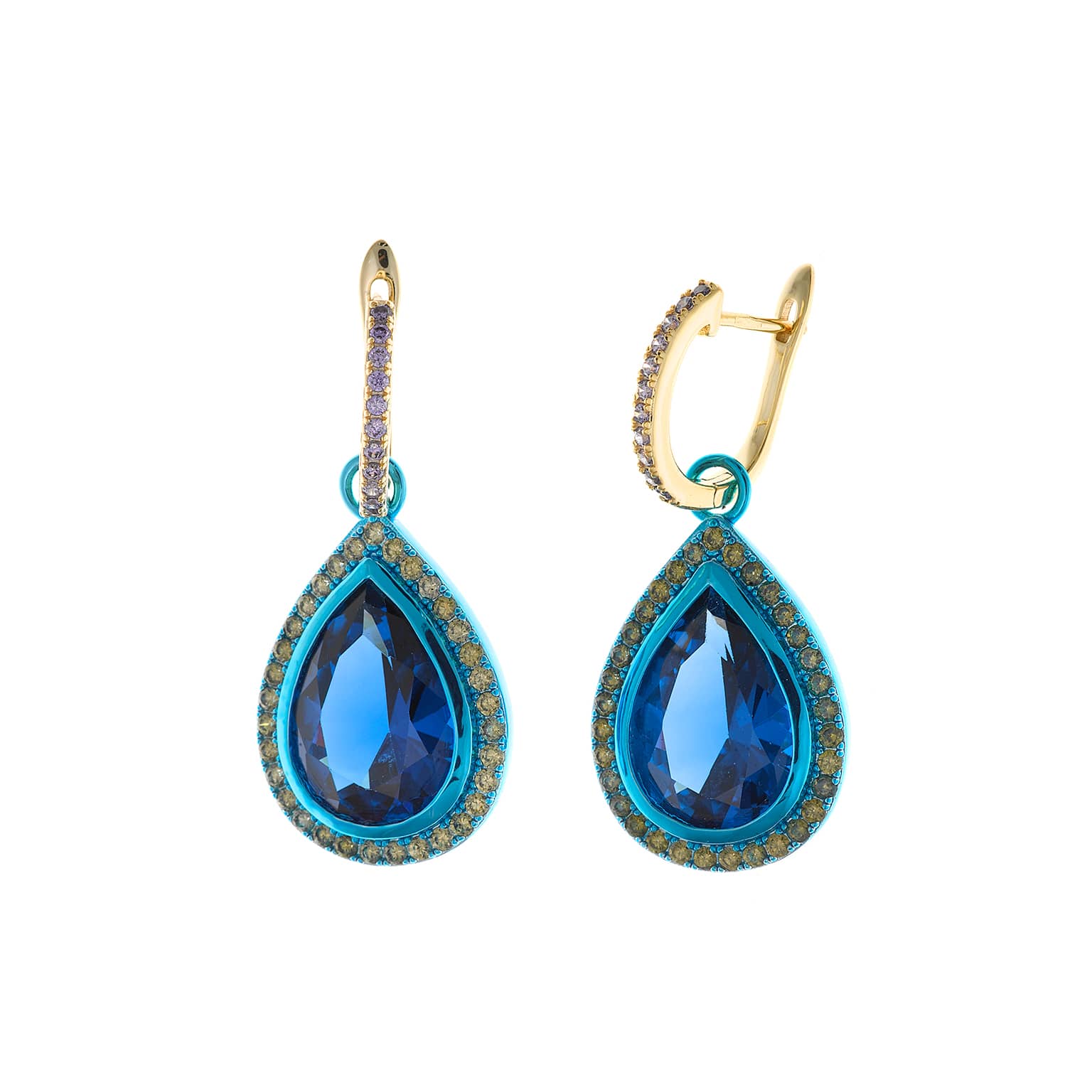 PENDIENTES PLATA CHAPADO DORADO Y AZUL BARRA CIRCONITAS AMATISTA PERA CRISTAL AZUL ALREDEDOR PERIDOTOSIZE: 4 X 2