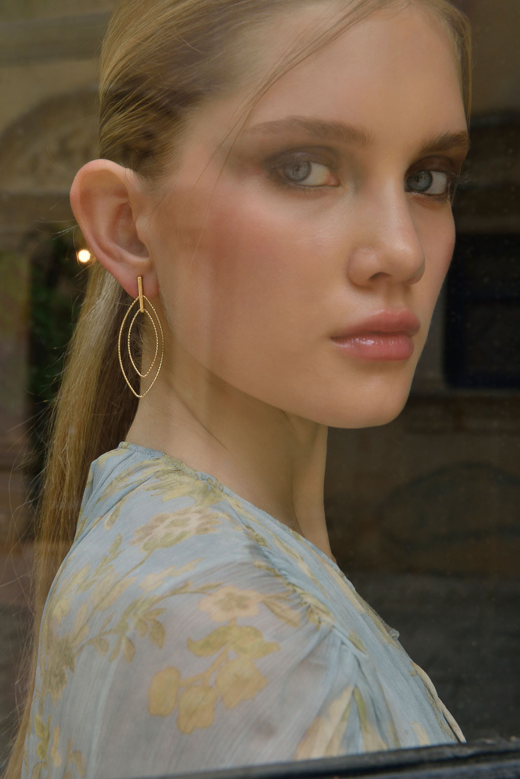 PENDIENTES PLATA CHAPADO DORADO DOS ELIPSE DIAMANTADOSSIZE: 5.50 X 2