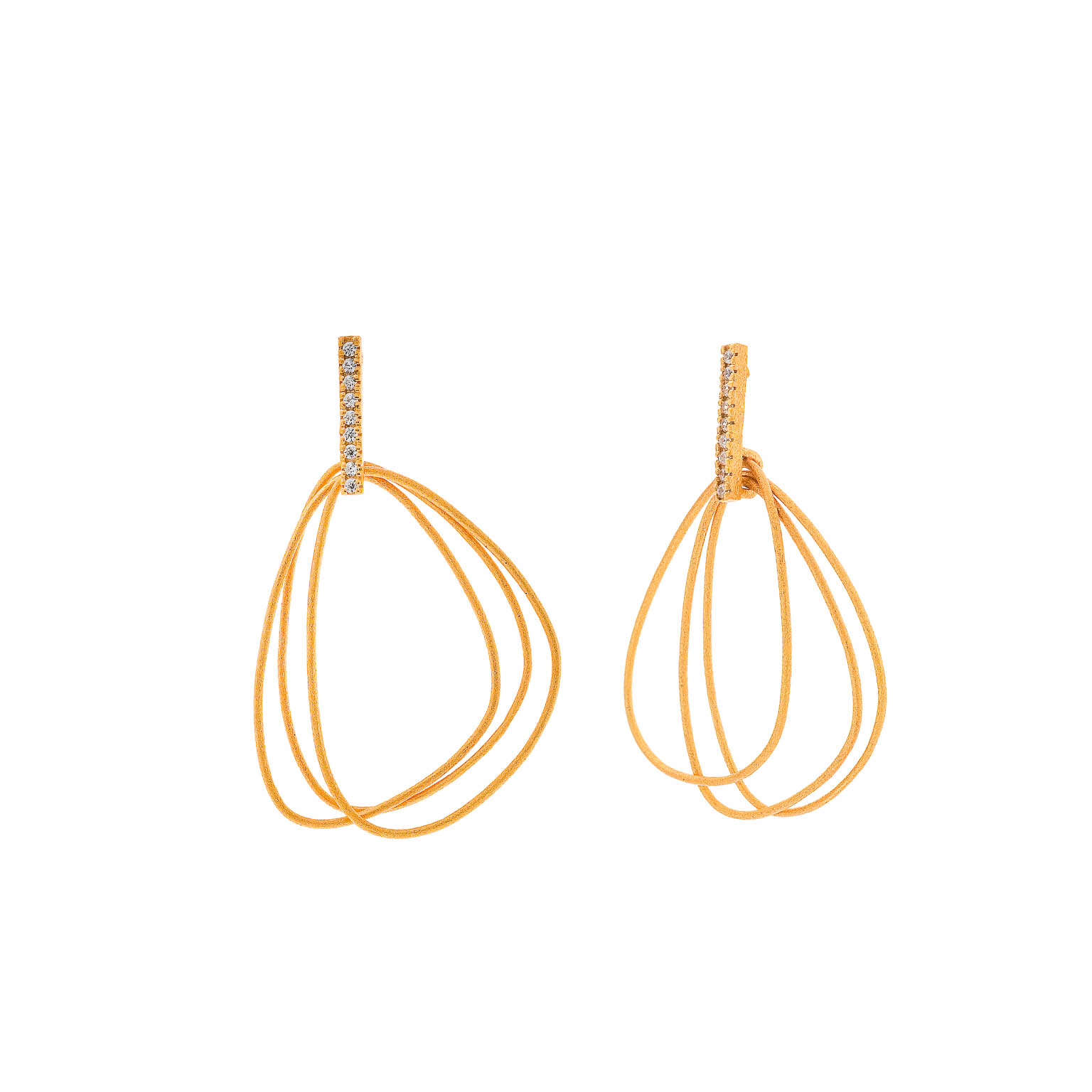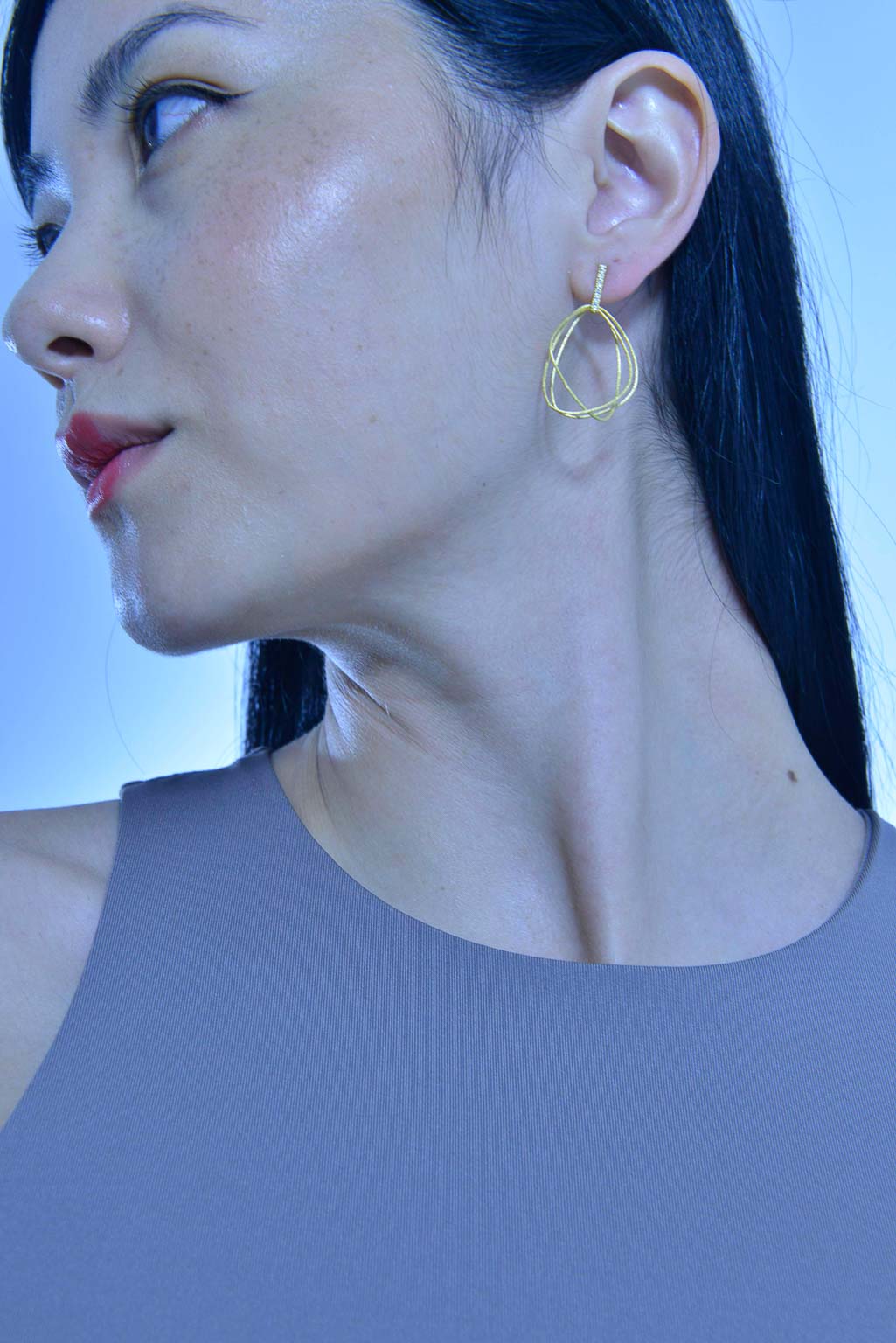 PENDIENTES PLATA CHAPADO DORADO MATE BARRA CIRCONITAS BLANCAS BRILLANTES TRES OVALOSSIZE: 3.20 X 2