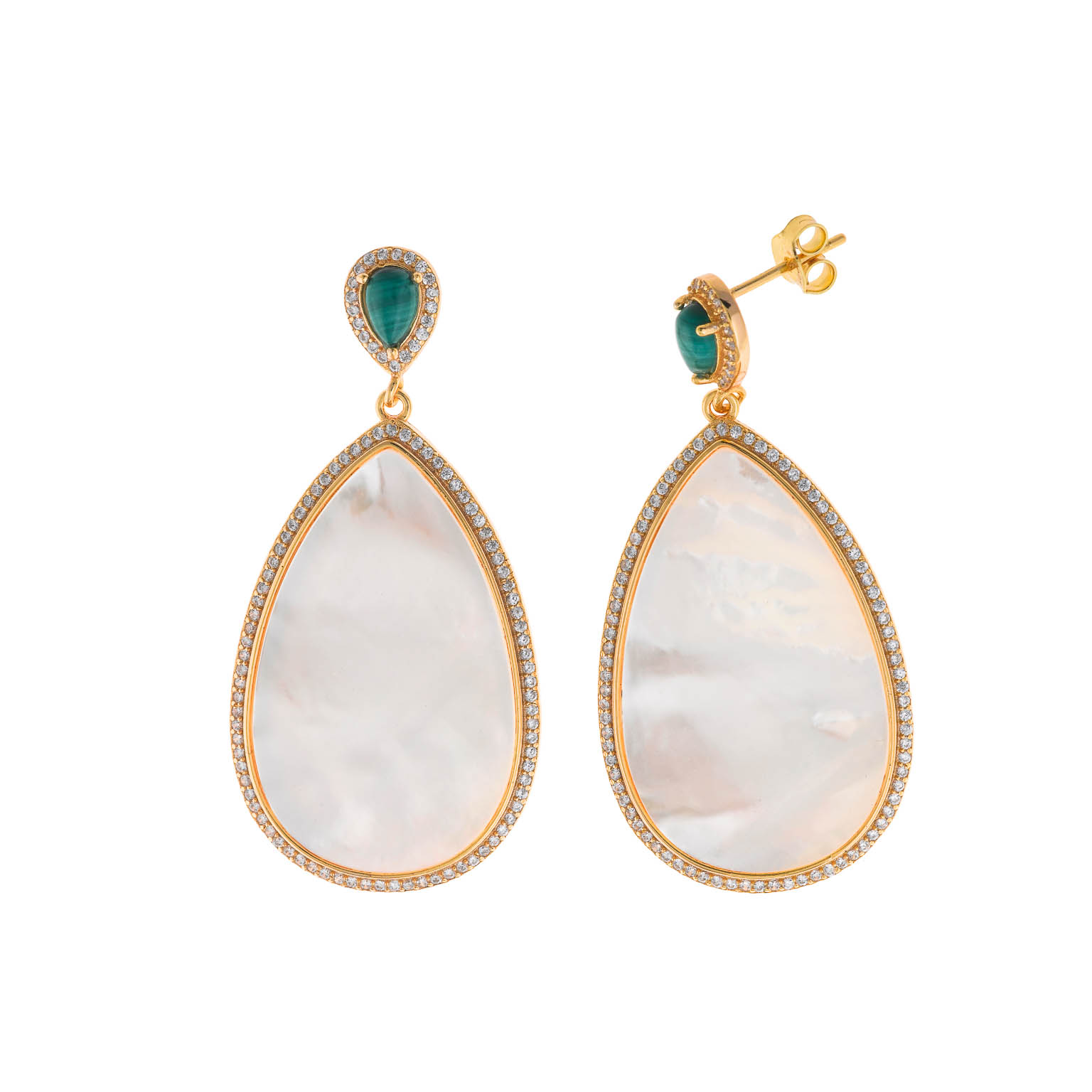 PENDIENTES PLATA CHAPADO DORADO PERA MALAQUITA PERA NACAR BLANCO ALREDEDOR CIRCONITAS BLANCASSIZE: 5 X 2.50