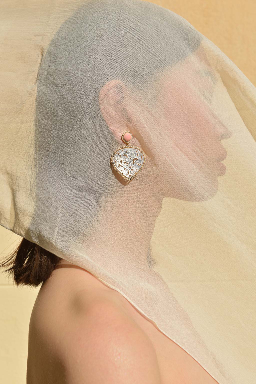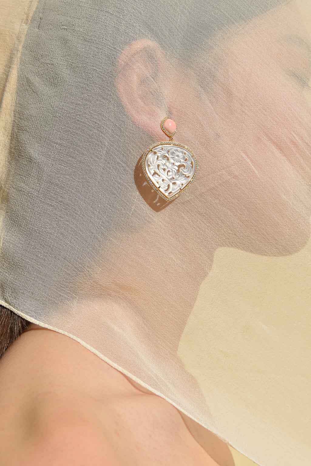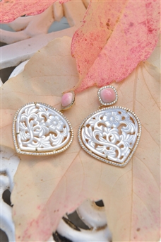 PENDIENTES PLATA CHAPADO DORADO ROMBO OPALO ROSA PERA FILIGRANA FLORES NACAR BLANCO ALREDEDOR CIRCONITAS BLANCASSIZE: 4.60 X 3.30
