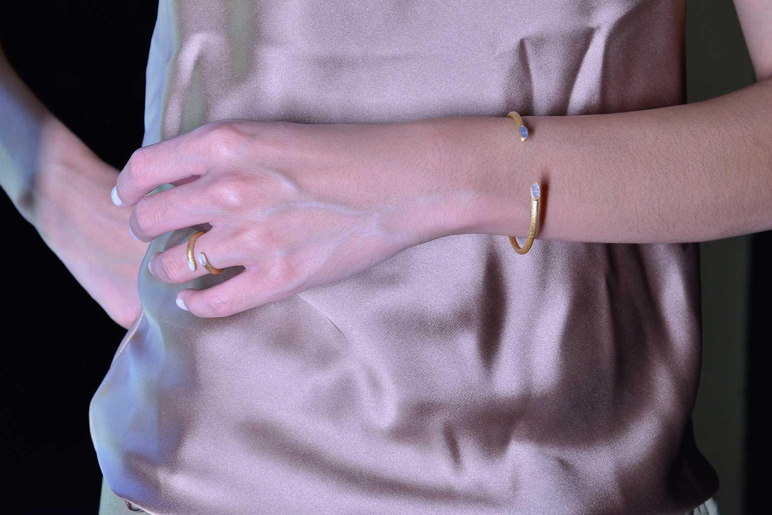 PULSERA CAÑA PLATA CHAPADO DORADO MADRE PERLASIZE: 6 X 5