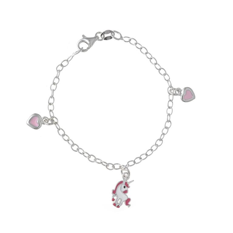 PULSERA PLATA RODIO DOS CORAZONES Y UNICORNIO ESMALTADO BLANCO Y ROSASIZE: 15