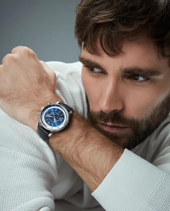Estilo: DeportivoUsuario: HombreMaterial de Caja: AceroForma de la caja: CircularMaterial de Bisel: AceroMaterial de la Corona: AceroColor principal Esfera: AzulDiámetro: 41 MMCristal: MineralAcabado: AceroTipo de Pulsera: CorreaMaterial de la Pulsera: PielColor de la Pulsera: NegroTipo de Cierre: HebillaDimensión de Correa: 20 - 18 MMImpermeable / Sumergible: ImpermeableProfundidad / Protección: 50 metrosTipo de Movimiento: Cuarzo Cronógrafo
