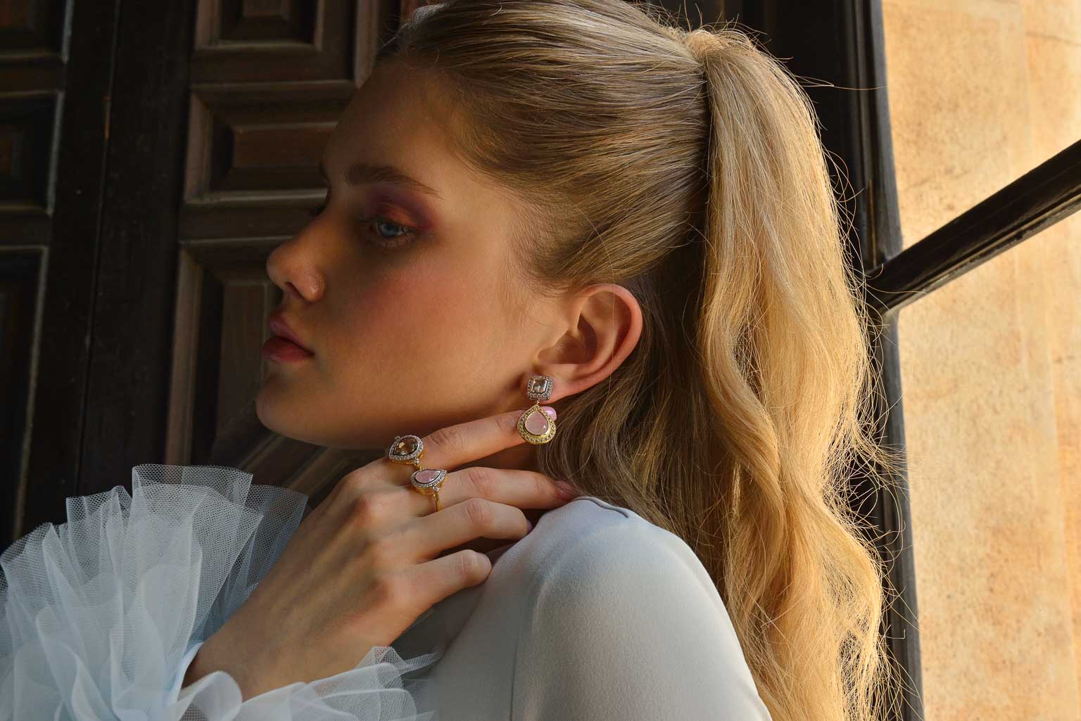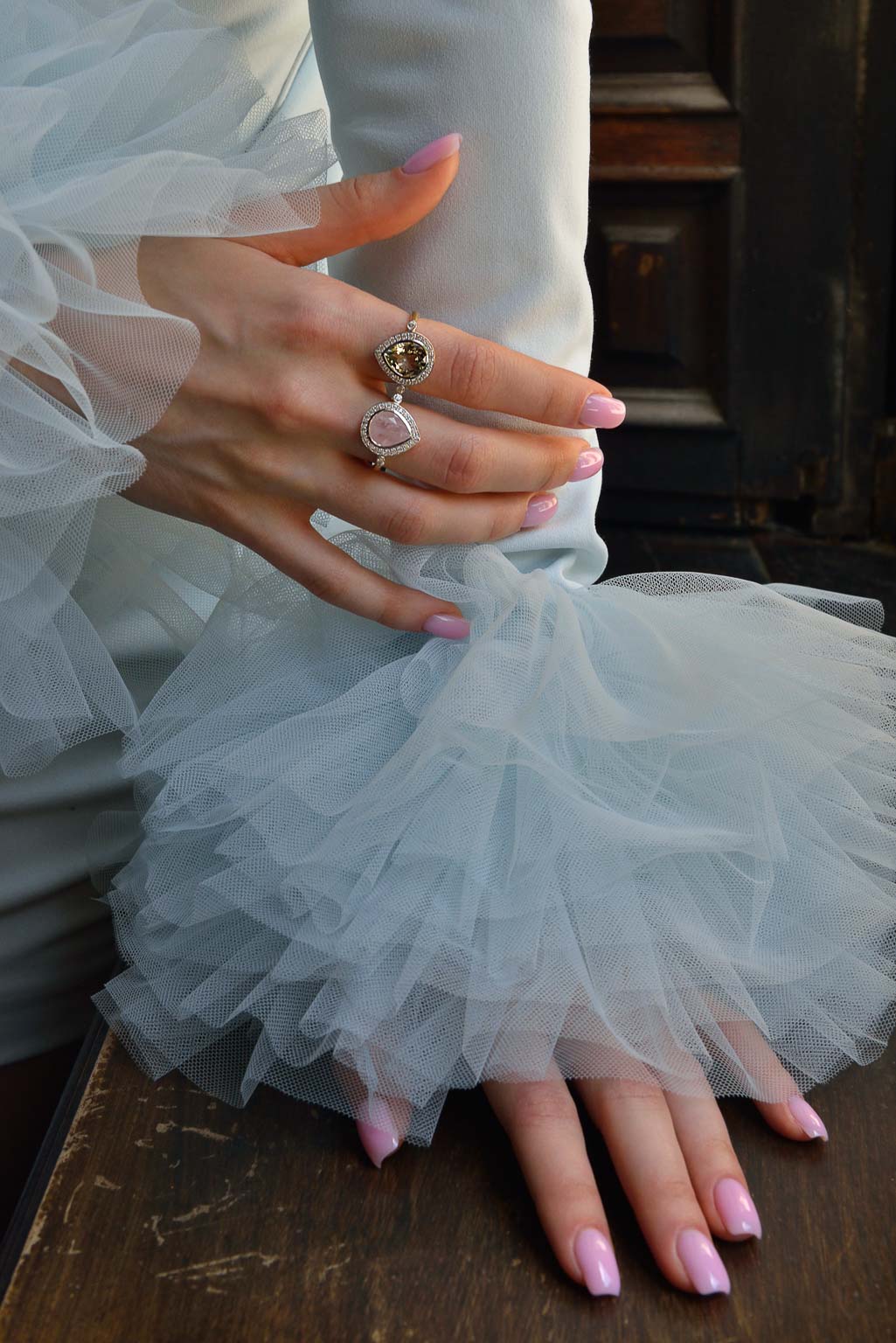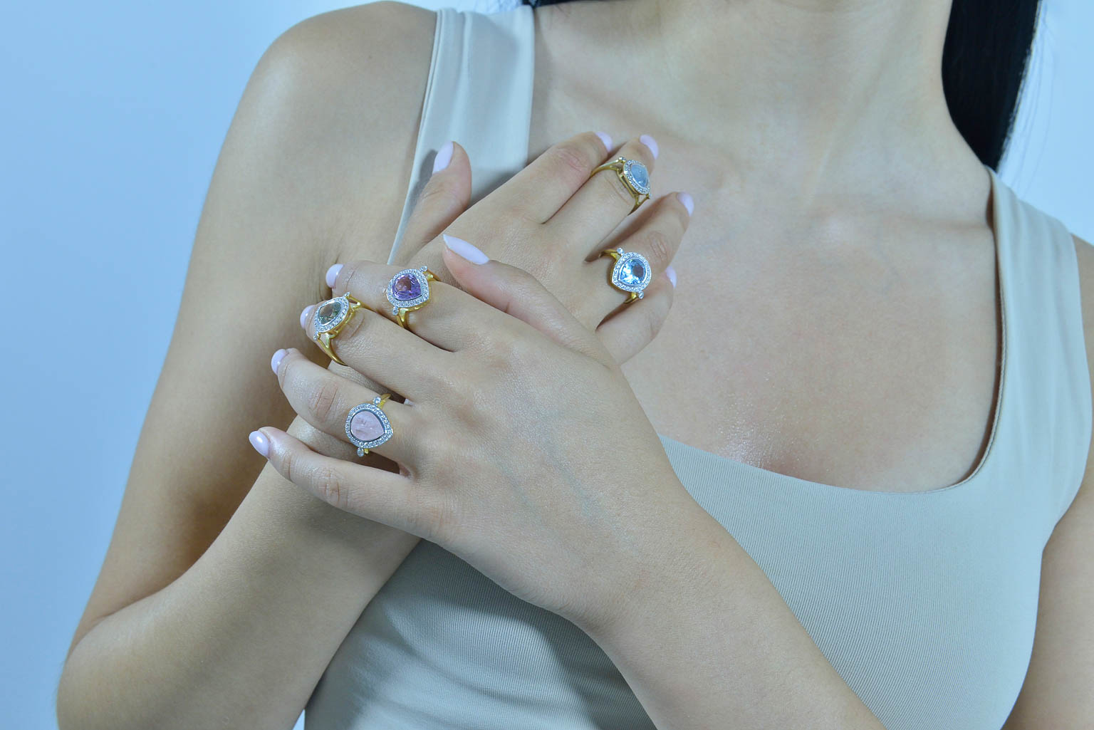 SORTIJA PLATA CHAPADO DORADO CUARZO ROSA PERA ALREDEDOR CIRCONITAS BLANCAS BAJO RODIOSIZE: 14
