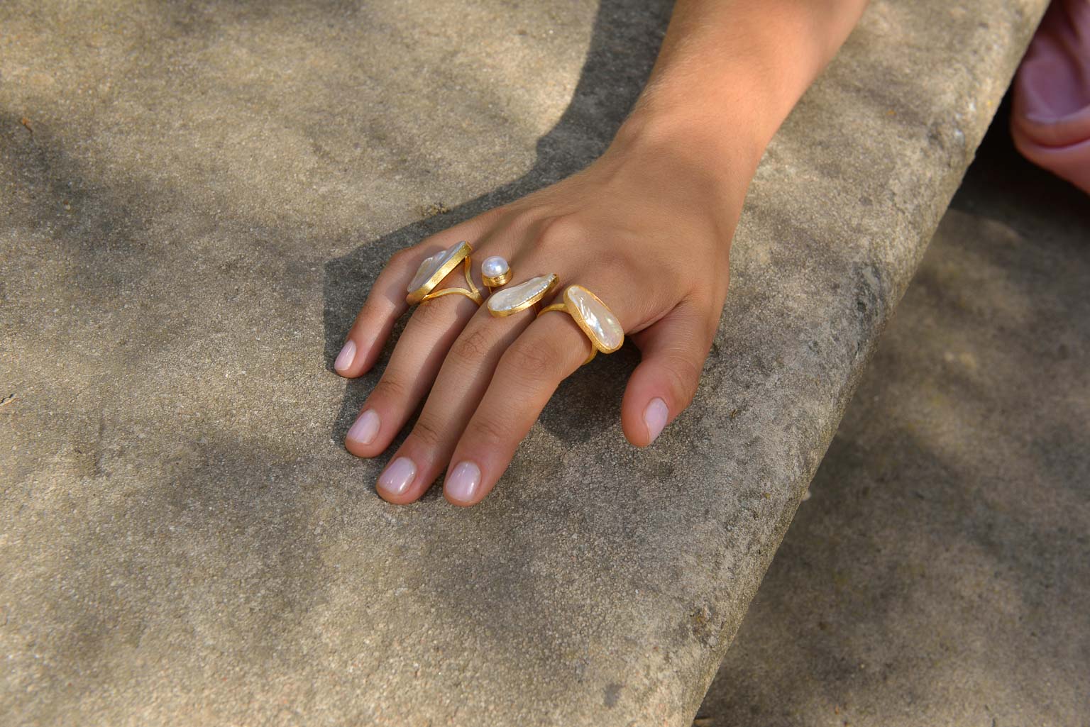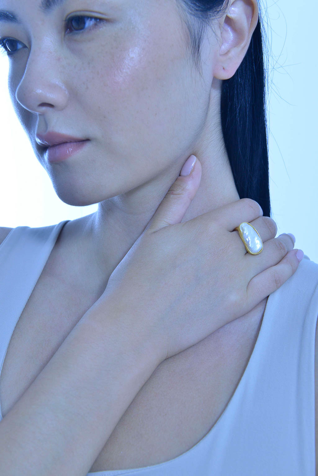 SORTIJA PLATA CHAPADO DORADO PERLA OVALADA BARROCA IRREGULAR DE AGUA DULCESIZE: 14